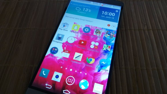 La surcouche LG associée au système Android 4.4 KitKat est toujours aussi pratique avec un mode invité notamment et toujours ce tapotement bien agréable pour sortir le mobile de sa veille. Pour nous aider à naviguer dans ses menus, le G3 propose d’emblée la fonction Smart Notice qui nous assiste via des notifications. Il nous guide dans notre utilisation et nous rappelle par exemple un appel raté ou de l’espace à libérer, etc.. Parmi les petits gadgets toujours intéressants à avoir, on trouve la détection du regard qui met par exemple une video en pause lorsqu’on regarde ailleurs…
