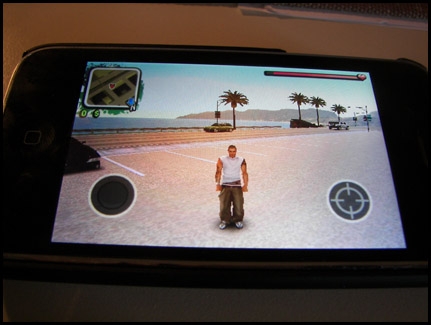 Gameloft vient de sortir Gangstar : West Coast Hustle pour iPhone. C’est un GTA-Like très proche de GTA San Andreas dans le style entièrement jouable sur mobile avec de la 3D et tout et tout. J’ai joué quelques minutes au jeu avant de vous préparer un test complet et je dois dire que c’est impressionnant de jouer à cela sur son téléphone. La 3D est bonne, le champs de vision aussi et même ma jouabilité est au rendez-vous. Gangstar : West Coast Hustle semble avoir les capacités de devenir l’un des tous meilleurs jeux iPhone. Voici quelques photos et une video in-game « maison ».