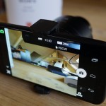 Le Sony QX30 est donc un objectif à monture E qui est dépendant d’un smartphone pour être utilisé. En effet, via wifi, on appaire le QX-30 à n’importe quel smartphone (iOS/Android) pour ensuite utiliser ce dernier comme écran de contrôle et de prise de vue avec tous les réglages et modes nécessaires à portée de doigts (auto, manuel, rafales, reconnaissances des visages, etc.). L’objectif peut-être à distance du mobile ou bien (c’est mieux…) fixé dessus via un accessoire en plastique bien pensé. Notez la nécessité de télécharger l’appli PlayMemories Mobile gratuite pour utiliser le QX30.