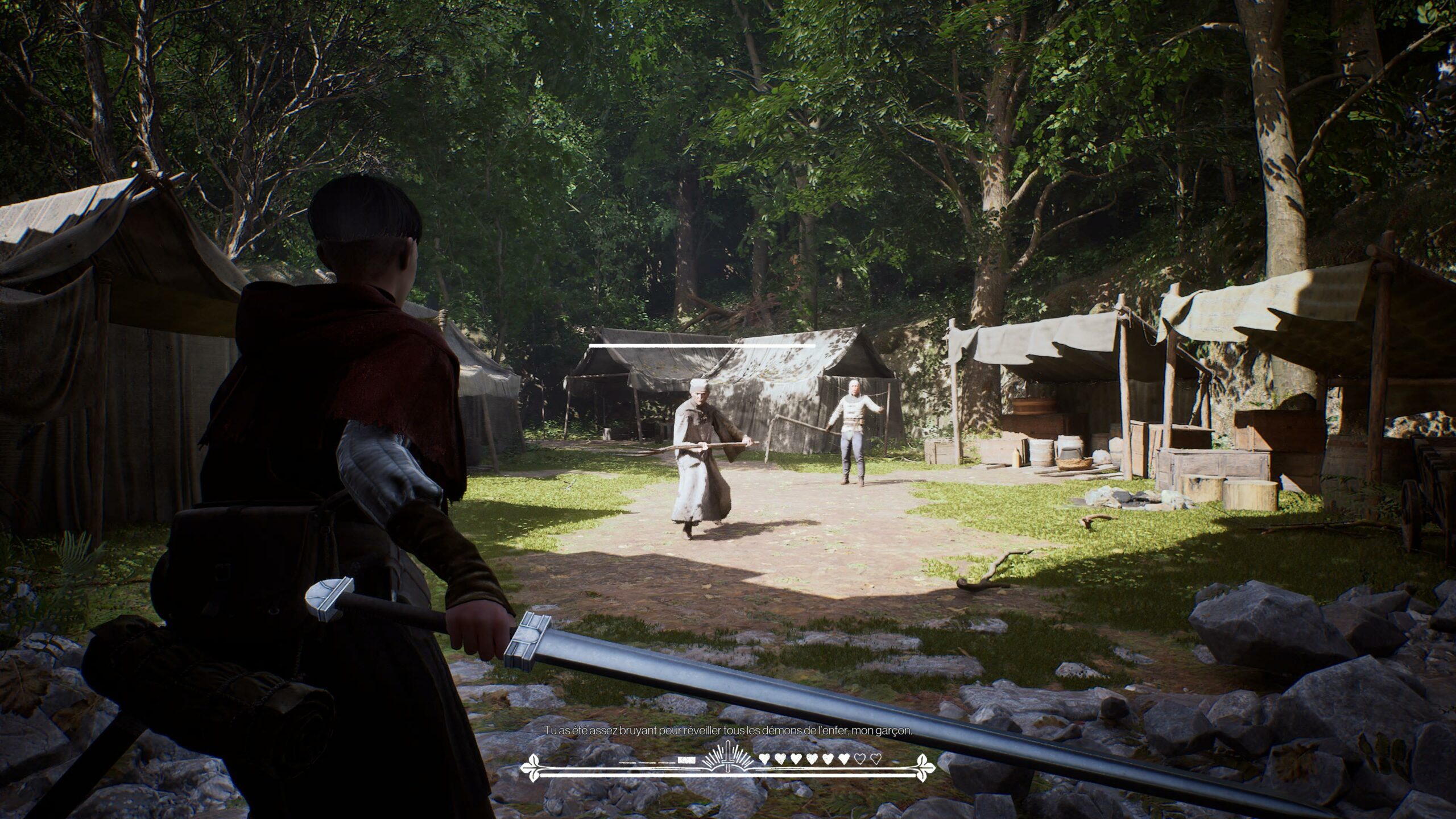 On incarne donc Aeta et après une cinématique puis un tutoriel de combat avec notre amie Bianca, les choses se gâtent et on part donc à la recherche de cette dernière… Alors que la peste fait rage des massacres ont eu lieu également et des bandits prennent le contrôle des villes et chateaux… l’occasion d’en découdre à l’épée à maintes reprises…