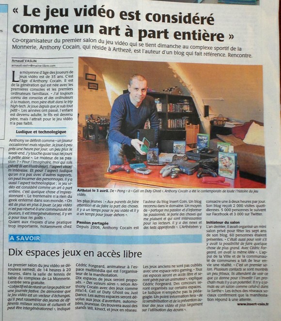 Ce samedi 12 avril de 14h à 20h avait lieu le premier Salon du Jeu Video de La Flèche (72) que je suis fier d’avoir organisé avec Cédric Forgeard de l’espace jeunesse de la ville. La ville de La Flèche et la Communauté de Communes du Pays Fléchois ont mis les moyens nécessaires à la bonne organisation de l’événement qui a pris place dans une salle de 600 m2 au Complexe de La Monnerie de La Flèche.