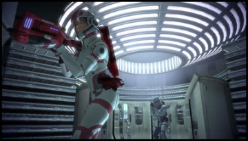 D’un point de vue purement technique, rien d’extraordinaire par rapport à des Halo 3 ou Gears of War mais c’est surtout l’impression de vie que Bioware a réussi à insuffler à ses personnages qui mérite d’être soulignée. Les décors ne sont pas en reste et on découvre toujours une nouvelle planète avec bonheur. Le summum à ce niveau est la visite de la «Citadelle», la capitale galactique où les milliards d’habitant de la voie lactée transitent. Faisant fortement penser à Coruscant dans Star Wars, cette mégalopole sera le point départ de l’aventure et permettra de collecter ses premières missions secondaires. Ces petits à-côtés sont du pain béni pour tous les joueurs. La plupart du temps bien scénarisées, ces missions prendront différents aspects et peuvent se résoudre en dialoguant ou en dégainant le fusil, au choix… D’ailleurs, en ce qui concerne les combats ils sont en temps réels et mettent à contribution aussi bien les compétences du héros que les reflexes du joueur. Puisant sans complexe dans le concept Gears of War, le héros peut sprinter et se mettre à couvert derrière à peu prêt n’importe quoi. Il peut alors sortir de derrière un mur et canarder ses ennemis comme il se doit. L’aspect tactique n’a cependant pas été négligé et on pourra à tout moment mettre le jeu en pause pour ouvrir le menu des armes ou des pouvoirs, afin d’affiner sa technique de combat. A noter aussi que l’on ne peut pas directement diriger les autres membres de l’équipe (au nombre de deux). On peut juste leur dire d’utiliser tel pouvoir ou tel arme pendant les affrontements. Si ce système de combats est très dynamique on peut regretter un côté un peu trop «bourrin» peut-être. L’arsenal étant uniquement composé d’armes à distance (pistolet, fusil d’assaut, fusil de précision, grenades, etc…), les amateurs de corps à corps seront forcément un peu déçus mais ce n’est pas forcément ce que l’on cherche dans ce genre de jeu.