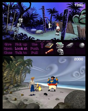 Je crois que là, je peux dire que c’est mon jeu préféré… J’ai terminé la série complète (4 épisodes) depuis 1990. « Monkey Island » le joyau des jeux d’aventure « point & click ». Le principe : on dirige, à la souris, un personnage dans différents tableaux. En bas de l’écran, une série de « verbes » est à notre disposition (ouvrir, utiliser, regarder, prendre, etc..), ainsi il y a une interaction avec les éléments du décors, et les personnages. Les objets trouvés sont réunis dans un inventaire et peuvent être utilisés avec d’autres objets, ou sur des personnages. Les dialogues avec les personnages fonctionnent par réponses au choix. Tout cela pour évoluer dans une aventure qui progresse petit à petit, pour offrir, au fur et à mesure, tel un film, de nouveaux décors et de nouveaux personnages rencontrés. Je pense sincérement que c’est le jeu video qui m’a procuré le plus d’émotion. Surtout le premier en 1990, j’avais 12 ans. Même si le jeu est d’une drôlerie décapante, on est pris dans une aventure à rebondissements et on se prend vraiment au jeu en s’attachant réellement aux personnages. Le 4ème opus a vu l’arrivée de la 3D. Personnellement, et paradoxalement, cette arrivée du réalisme a diminiué chez moi cette dose d’émotion (c’est peut-être aussi parceque j’avais 10 ans de plus…). Quoiqu’il en soit, j’attend de pied ferme Monkey Island 5! Pour les intéréssés, un site complet sur la saga : World of Monkey Island.