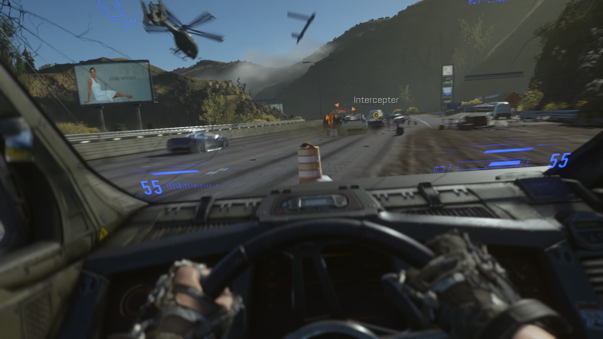 Call of Duty oblige, on se trouve dans un jeu forcément scripté mais misant plus que jamais sur l’action et la mise en scène. Le joueur semble vivre un film d’action sans temps-morts avec des cinématiques d’enchainements désormais splendides. La PS4 donne le meilleur d’elle-même avec notamment des modélisations de visages saisissantes de réalisme et des animations naturelles à souhait. Du coup, on profite pleinement de l’arrivée dans le jeu d’un certain Kevin Spacey campant un personnage clé de l’histoire. En effet, le célèbre acteur de Usual Suspect s’est prêté au jeu du motion capture pour un résultat bluffant. On trouve aussi Tryo Baker, jeune acteur moins connu, qui prête son image à notre personnage.