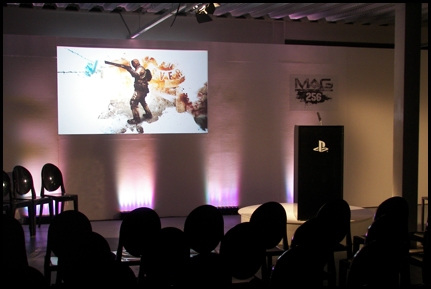 Comme je vous l’évoquais récemment, j’ai été invité à Londres par Playstation afin de prendre part à une sorte de tournoi 128 joueurs sur MAG 256, le FPS uniquement online qui sortira en exclu sur PS3 la semaine prochaine. En compagnie d’une poignée de bloggeurs et journalistes spécialisés, nous nous sommes donc rendu en Eurostar jusqu’à la capitale anglaise pour ensuite arriver à l’Université Wetminster dans laquelle se tenait l’animation. En fait, c’est dans les sous-sol qu’ont été installés 128 écrans et 128 PS3 branchées en réseau local sur une excellente armature métallique lumineuse en forme de 256!!! Les développeurs de Zipper Interactive étaient présents pour nous présenter le jeu et on a donc jouer toute l’après-midi à différents modes de jeu (Sabotage, Domination, Acquisition…) avec chacun un ID spécial du même niveau. Entre parties de 20 minutes et relaxation ou restauration de 20-30 minutes dans le lounge, on a donc bataillé dans des parties en local contre des Européens comme nous (anglais, italiens, espagnols, allemands et j’en passe…). C’est à la fin de la journée, dans le mode Domination qu’on a affronté à 2 reprises 128 autres joueurs installés au US et composés notamment de certains développeurs du jeu. Après un match nul on a finit la journée. Globalement le jeu est très bon, parfaitement taillé pour le online. Je regrette juste un peu de confusion dans les ordres et beaucoup de « chacun pour soi ». Mais il faudra jouer plus longuement pour se fondre dans le système. Aussi, j’ai constaté du lag sur les parties en 128 contre 128 mais vu qu’on était en ligne avec les USA c’est peut-être pas les conditions optimales…