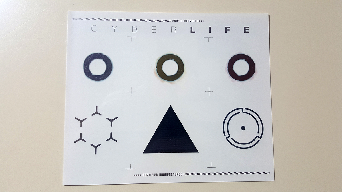 On vous détaille tout cela dans un test complet très prochainement. En attendant, voici le contenu du press kit de Detroit Become Human : dans une magnifique boite triangulaire on trouve une carte avec un code pour télécharger le jeu, un artbook, des tattoos et des cartes de personnages… l’ensemble est très classe, dans l’esprit SF chirurgicale du jeu….