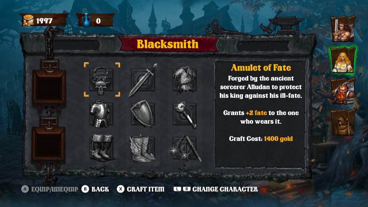 Vous devrez récupérer des pièces soit en lootant sur les monstres vaincus soit sur les cadavres de malheureux qui ont perdu la vie dans les différents donjons. Cet argent sera utilisable au village pour acheter armes et équipements mais aussi des élixirs de quoi survivre si votre healer n’est plus en capacité de vous soigner.