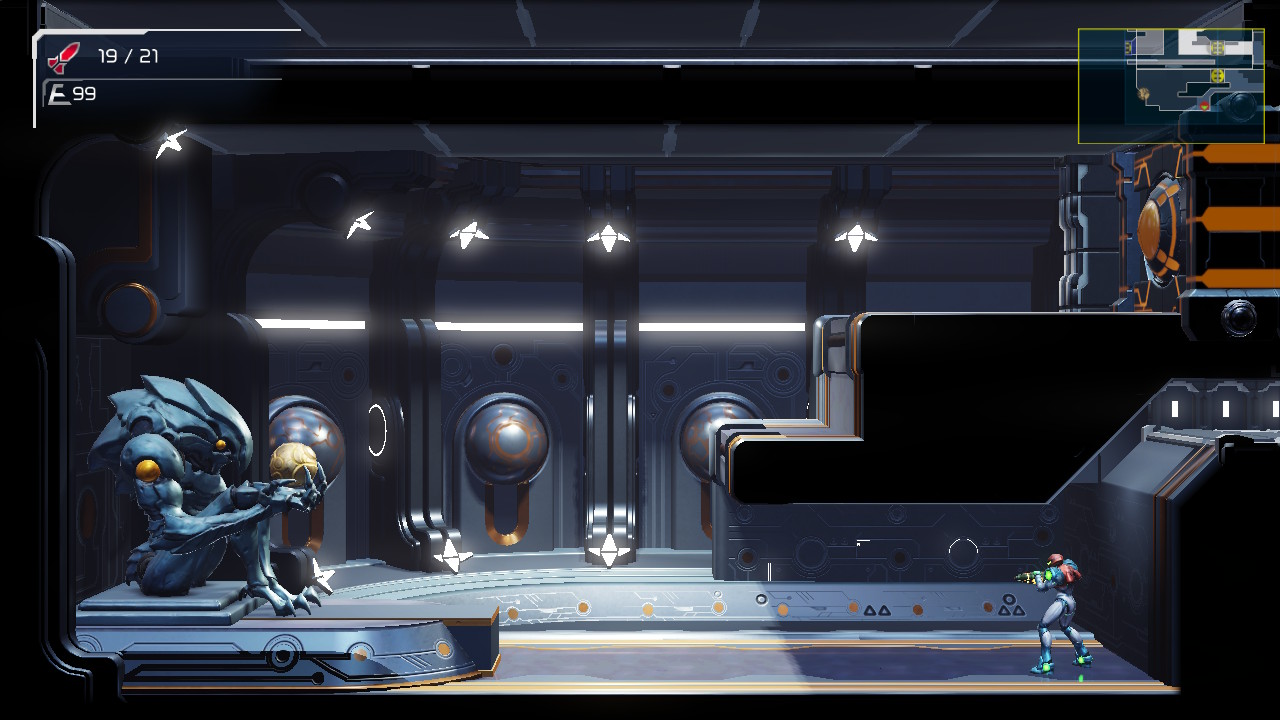 Ce nouvel épisode parlera davantage aux fans de la série mais reste pour moi une très bonne porte d’entrée à la licence Metroid. Je tenais à vous avertir quand même sur son niveau de difficulté qui pourra en frustrer plus d’un. Metroid Dread propose du challenge dans ses combats, avec les E.M.M.I, contre les boss et même dans son exploration. Le jeu ne vous tient pas par la main et vous allez devoir vous débrouiller pour progresser. Vous n’aurez pas d’indication pour vos objectifs et allez devoir trouver par vous même où aller. Cela ne m’a pas trop dérangé mais l’exploration de chaque zone peut être assez longue surtout si vous vous êtes trompé de destination. Dès le début du jeu, vous aurez accès à la carte pour vous aider à vous y retrouver mais elle se montrera rapidement brouillon. Cela m’a rappelé Star Wars Jedi Fallen Order qui m’a totalement perdu avec sa carte en vue 3D.
