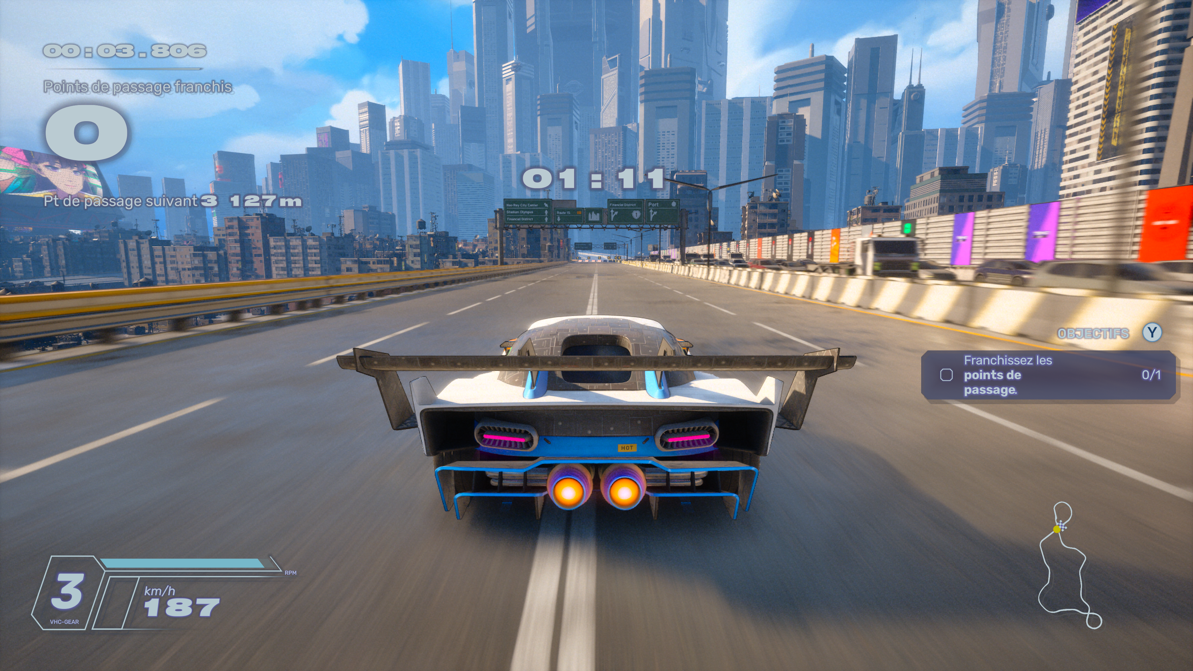 Tel un jeu de baston, Screamer propose des courses dans lesquelles il va falloir user du drift (conduite avec le stick gauche, drift avec le stick droit) mais aussi de réflexes avec l’activation de Strike ou autres Overdrive…