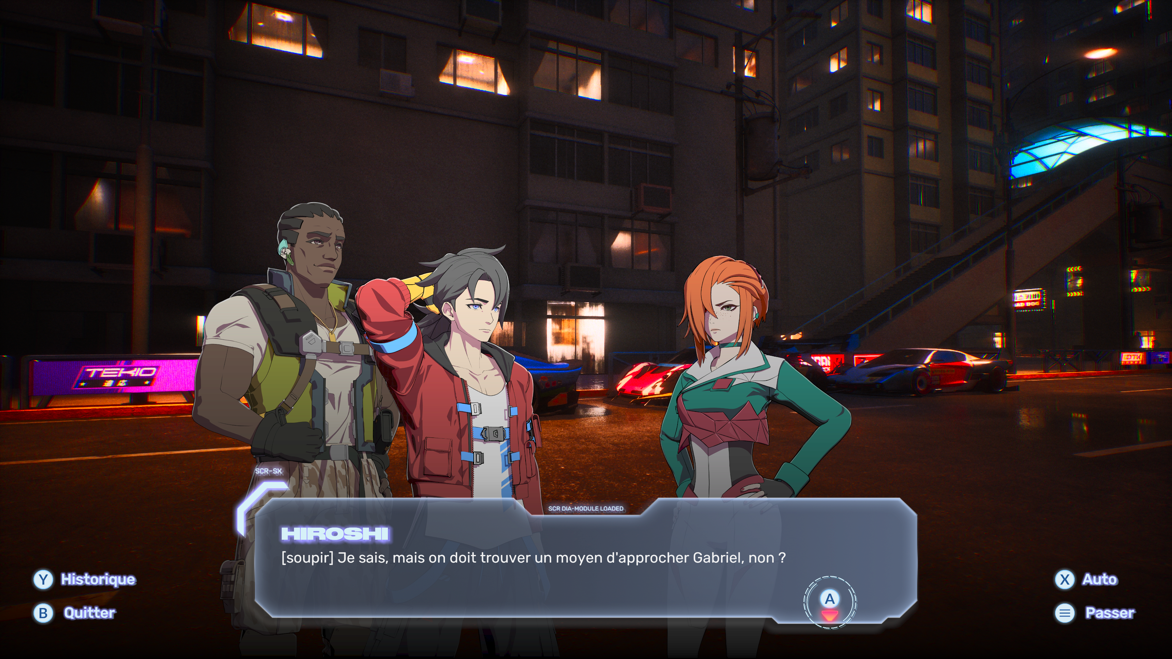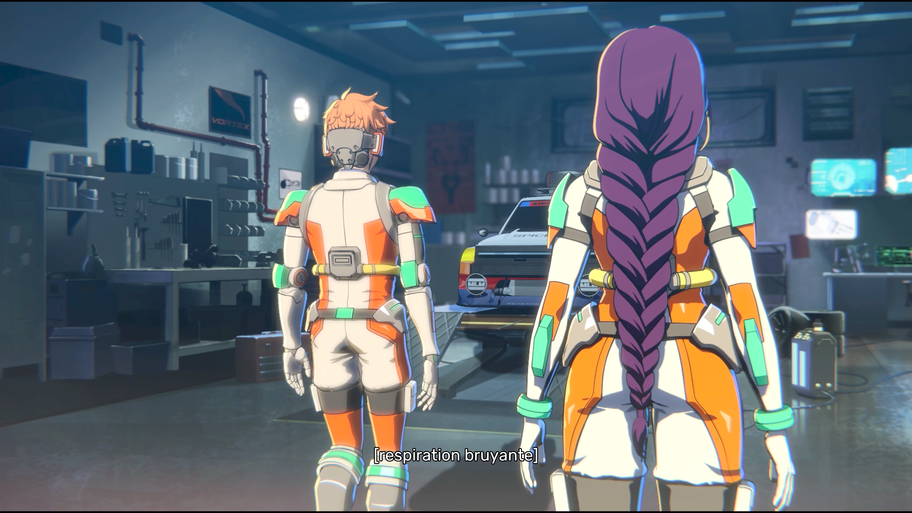 Le titre joue habilement avec son univers qui, s’il est en effet un jeu de bagnoles, il est aussi un jeu de relations humaines et l’évolution des personnages et leurs interactions sont importante dans le jeu et en course. Encore une fois, le parallèle avec un jeu de baston à la Tekken ou Street Fighter est évident.