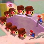La saga Mario est plutôt réputée pour être exigeante mais ce Super Mario 3D World semble être nettement moins difficile que son ainé sur Wii U et on se surprend à vite finir les mondes successifs. Bien sûr la difficulté accroit au fil des mondes mais globalement c’est très accessible (d’autant plus qu’on trouve beaucoup de bonus dans les niveaux). A plusieurs ça peut se compliquer par le fait que si on s’éloigne trop les uns des autres on a vite des soucis de camera et d’appréciation des distances par exemple. Parfois rageant. En tous cas, on retrouve ce système de bulle lorsqu’on réapparait dans le niveau et n’importe qui peu entrer dans la partie à tout moment. Comme dans Mario U, un joueur peu très bien agir sur le GamePad pour aider (ou pas) ses amis en actionnant des mécanismes ou en gênant des ennemis. Mais un joueur incarnant un perso avec le GamePad pourra aussi actionner certains mécanismes comme par exemple des blocs pour créer un escalier.