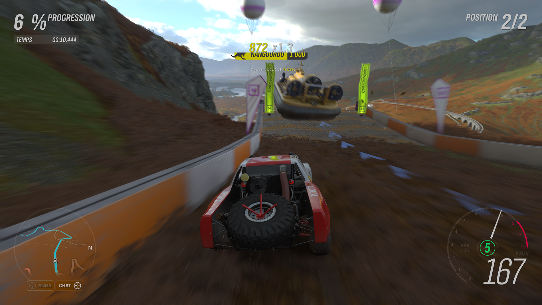 On retrouve aussi le principe du festival qui permet donc d’enchainer des épreuves aux quatres coins de la map. Ainsi, on participera à différents types de courses : temps, courses sur boucles, courses hors-piste, etc.. mais aussi des défis scénarisés comme dans le mode Cascadeur qui nous permet donc, le temps d’un instant, de jouer les cascadeurs dans un bolide précis et pour une action précise : poursuivre un avion, faire un saut sur un tremplin, etc.. Ce mode est franchement cool.