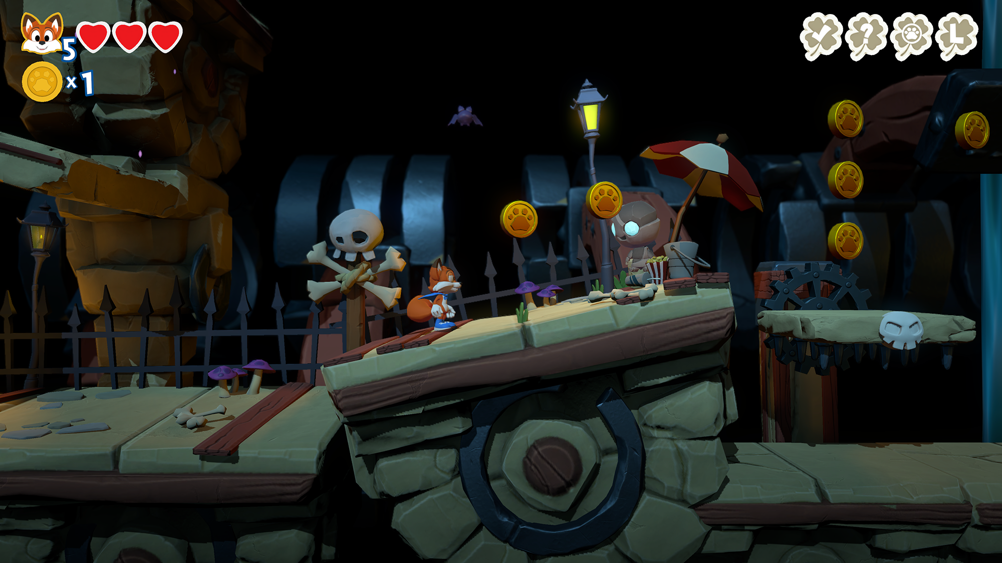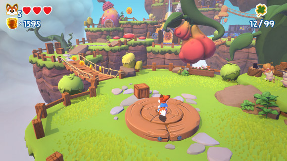 On incarne donc Lucky, un attachant renard à la recherche de sa soeur enlevée par Jinx, le chat, méchant de l’histoire. On est alors emporté dans le livre des âges qui regroupe différents mondes fantaisistes. C’est au total 4 mondes (à débloquer au fur et à mesure) qui s’offrent à nous. Dans chacun d’entre eux on aura accès à différentes portes magiques pour accéder à différents niveaux. Ici, le but est de récupérer suffisamment de trèfles pour débloquer l’accès à d’autres niveaux et au final d’autres mondes. Mais il faudra aussi affronter les différents boss…