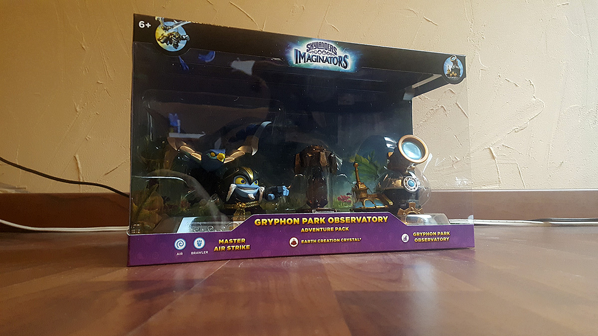 Ce pack aventure comprend un cristal de création (Terre), le personnage Master Air Strike (Air) et l’aventure Gryphon Park Observatory bien évidemment.