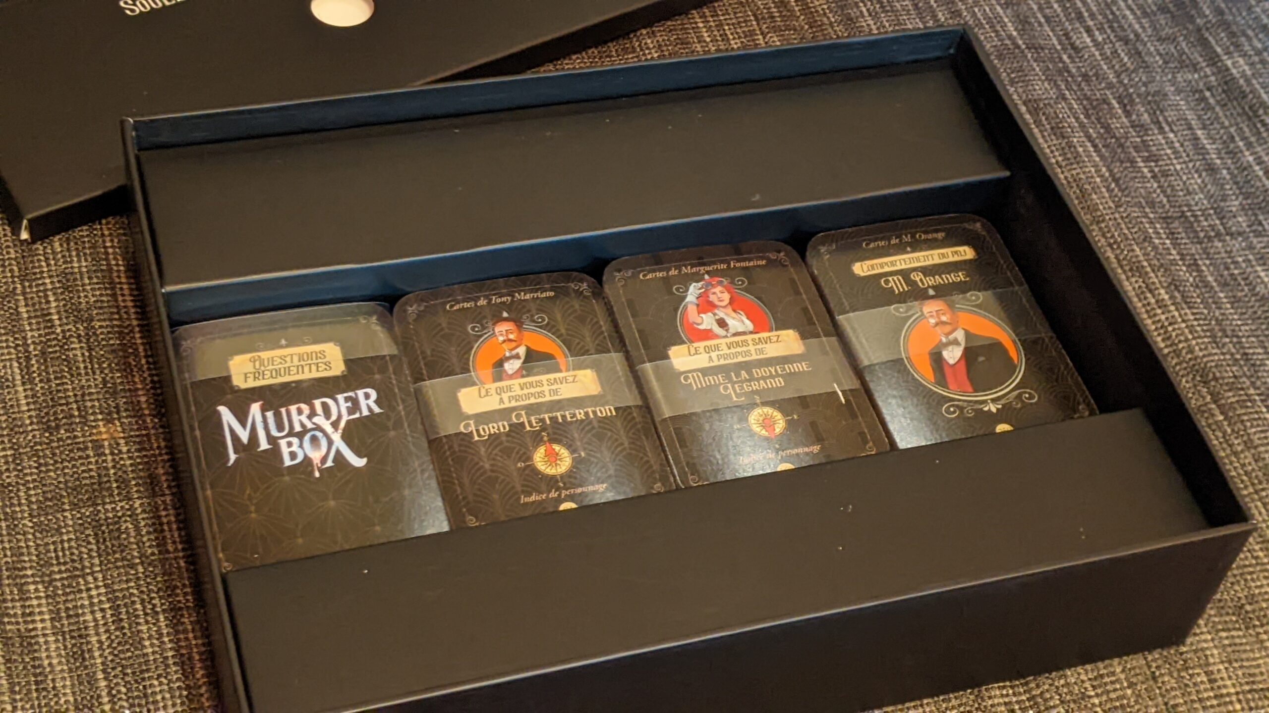 Comme dans tous jeux de ce type, libre à chaque joueuse et chaque joueur d’incarner son personnage et d’apporter pourquoi pas une touche théâtrale. En effet, le concept va bien plus loin qu’un simple Cluedo en apportant un aspect scénaristique bien plus dense avec tout un tas de cartes qui permettent justement de bien comprendre et incarner son personnage mais aussi d’interroger les autres protagonistes, trouver des indices, etc..