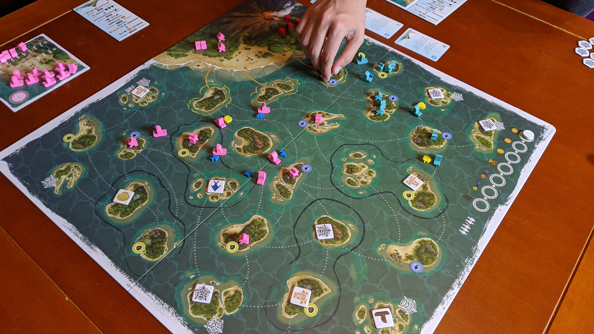 Poissons ou coquillages seront les ressources nécessaires pour « acheter » un placement de bateau, autrement dit un voyage et on pourra aussi utiliser ceux des autres joueurs contre de la ressource évidemment.
