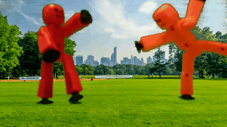 Stikbot joue la simplicité en terme d’utilisation mais aussi en terme de design puisque les personnages sont de simples pantins colorés. Grâce à leurs ventouses on peut les coller dans différentes postures sur le fond vert en carton fourni dans le pack. D’ailleurs, le pack Stikbot Zanimation Studio que nous avons testé contient donc un fond vert en carton, 2 figurines, 2 boites (verte et bleu) et un mini-trépied pour fixer son smartphone.