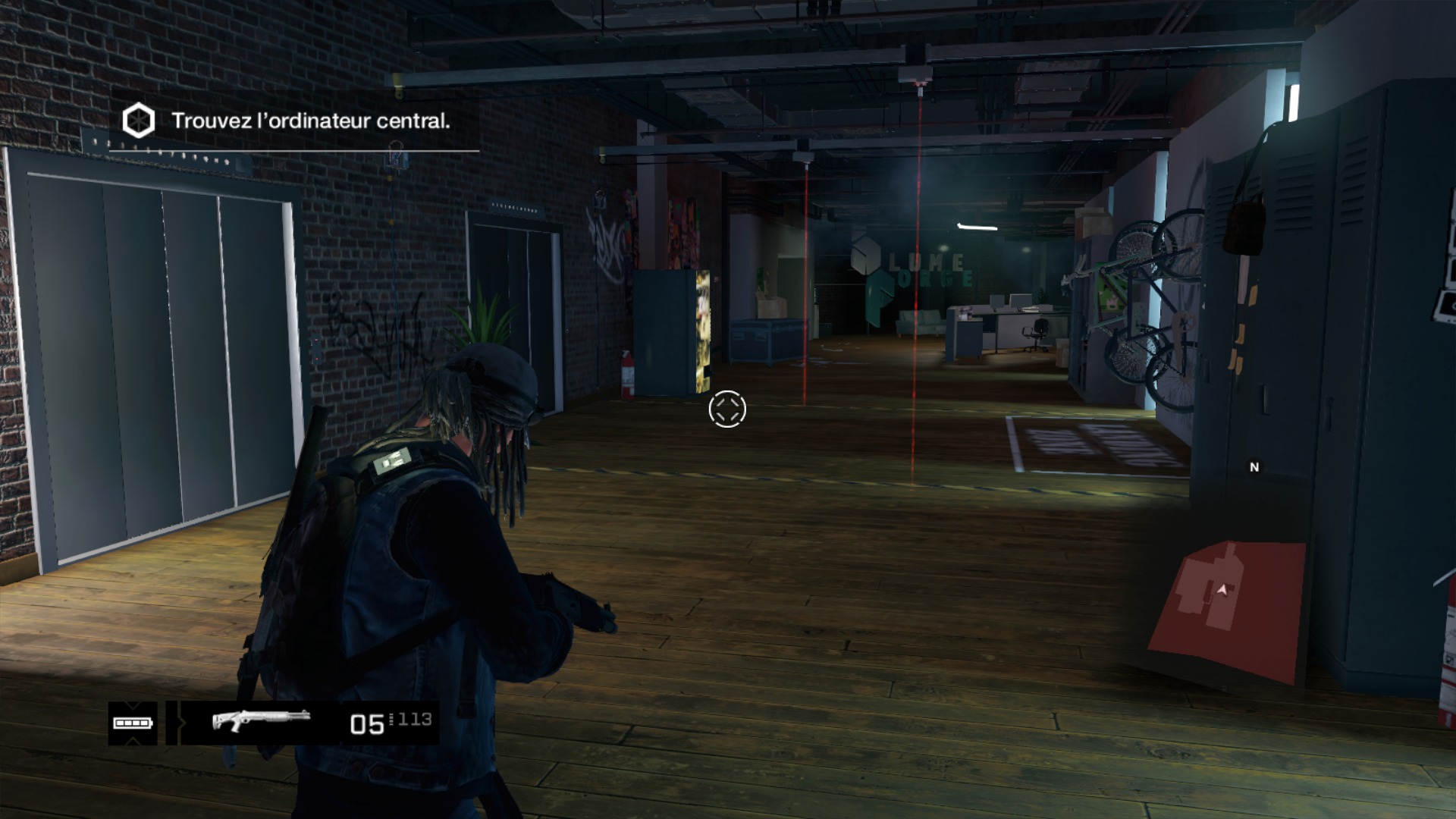Comme Aiden, T-Bone peut pirater les téléphones de n’importe qui, jouer avec les caméras ou encore d’autres éléments : métro, portails, feux tricolores, etc.. Mais la nouveauté vient d’un joujou nommé Eugène qui est en fait une voiture radio-commandée qui permet d’atteindre des zones précises (pas les bouches d’aération notamment). Ainsi, on peut actionner des éléments à distance, chatouiller les ennemis ou bien faire exploser des trucs… L’idée est plutôt sympa d’autant plus que Eugène peut se faire repérer et tout cela engendre des situations intéressantes qui change un peu de l’ordinaire. On regrette juste un axe sous-exploité au final et une conduite hasardeuse de l’engin… Pour les nouveautés on trouve aussi des passages dans lesquels il faudra éviter des lasers ou bien des puzzles (jonctions à assembler, comme avec Aiden) qui se matérialisent parfois directement dans le décors…