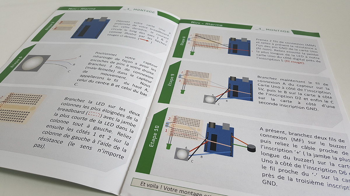 La notice a l’avantage de comporter des infos complémentaires qui explique bien ce que l’on fait avec un lexique mais aussi des possibilités de modifications de la programmation pour aller plus loin pour ceux qui le souhaitent.